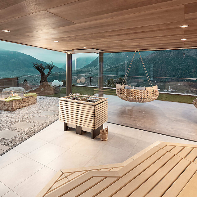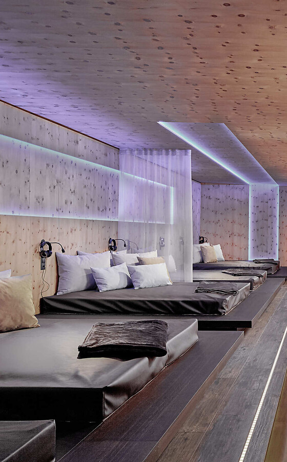 - Area relax panoramica “Zirbenkistl” con lettini d’acqua riscaldati